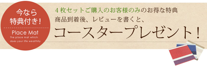 今なら4枚セットご購入のお客様に限り、レビューを書けばコースタープレゼントの