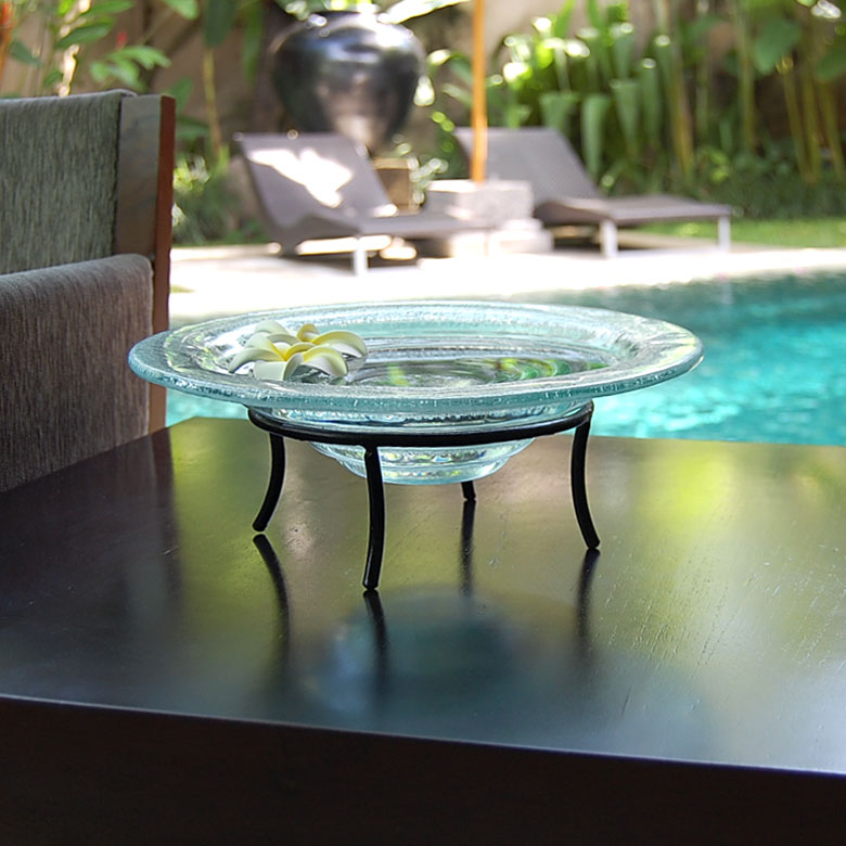 ガラスの水盤とアイアンスタンド