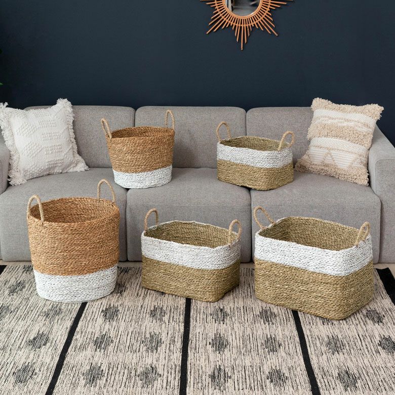 ナチュラル×ホワイトのバイカラーデザインの爽やかなバスケット。