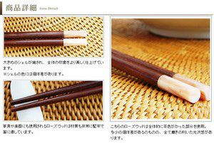 こちらのアイテムは家具や楽器にも使用される堅牢な素材で、光沢ある質感に磨き上げられたローズウッドで作られたお箸です。