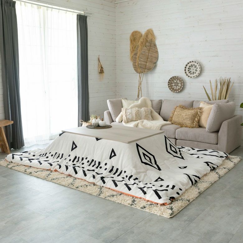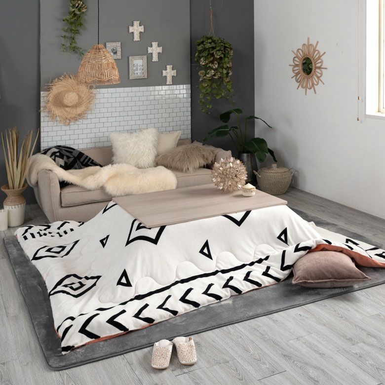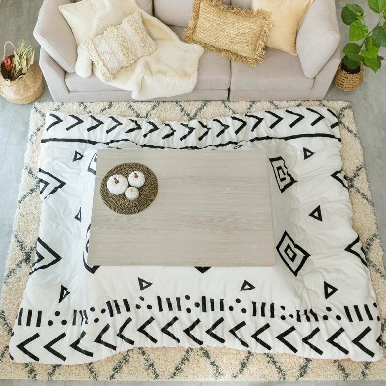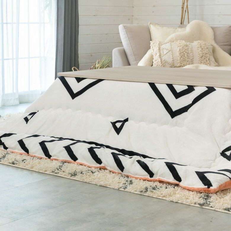 かわいい ナチュラル 薄掛け カジュアル 暖房器具 こたつ布団 長方形 ベニオワレン風 幅 約190×240cm フランネル 白黒 モノトーン コーラルピンク ホワイト ブラック [70010-wh]【 こたつ なめらか 肌触り ふんわり モロッカン 省スペース こたつ 布団 おしゃれ こたつ掛け布団 コタツ布団 炬燵 カジュアル 】