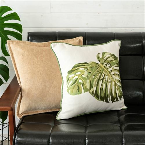 クッションカバー ボタニカル リゾートボタニカル トロピカル モンステラ柄 クッションカバー ホワイト 45×45cm [66550]【 ソファークッション ベッドクッション モンステラリーフ柄 ボタニカル 緑 45角 おしゃれ 北欧 アジアン雑貨 アジアン 雑貨 リゾート バリ島 ハワイ ハワイアン 】