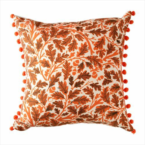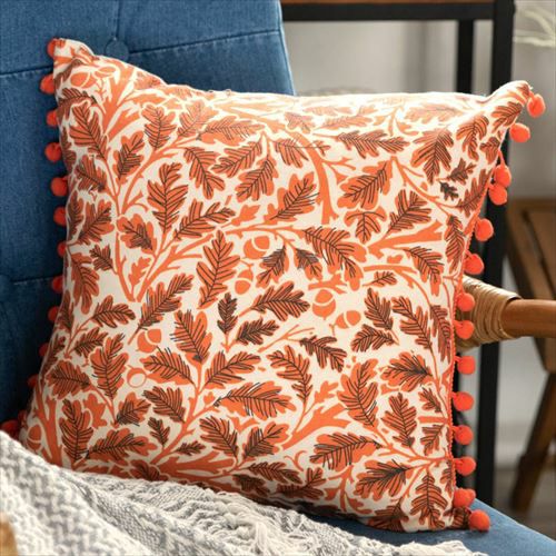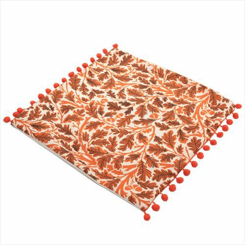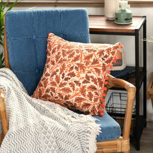 クッションカバー パームリーフ リーフ柄 ボタニカル 【メール便対応】クッションカバー ミニポンポン付き リーフ柄 プリント オレンジ 約45×45cm 正方形 [66558]【 ソファークッション ベッドクッション ボタニカル ヤシの木 45角 おしゃれ 北欧 アジアン雑貨 アジアン 雑貨 リゾート バリ島 ハワイ ハワイアン 】