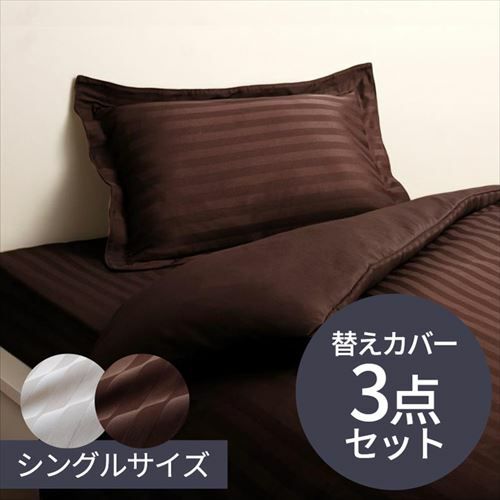 ベッド用カバー3点セット ホテル仕様 ベッドシーツ 寝具 シングルベッド用 布団カバー3点セット ストライプサテン 掛け布団カバー ボックスシーツ 枕カバー ベッドタイプ [99002-wh 99002-br]【 綿×ポリエステル カバーリング 洗い替え用 内ズレ防止ヒモ付き ファスナー 全周ゴム仕様 おしゃれ 】