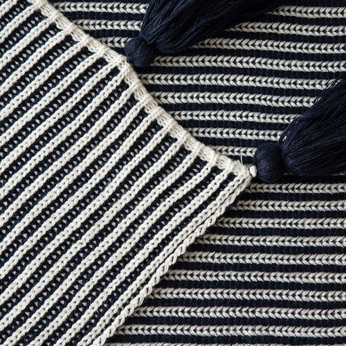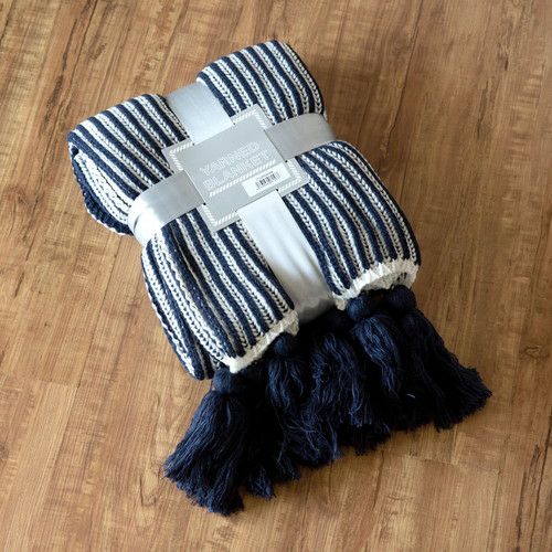 ポンポンブランケット ニットブランケット ひざ掛け 毛布 ニットブランケット BIGタッセル付き ボーダー柄 ネイビー 大判 100×140cm [66888]【 ポンポンブランケット ニットブランケット ひざ掛け 毛布 掛け毛布 フリンジ ポンポン タッセル ソファカバー ベッドランナー スローケット おしゃれ 北欧 】