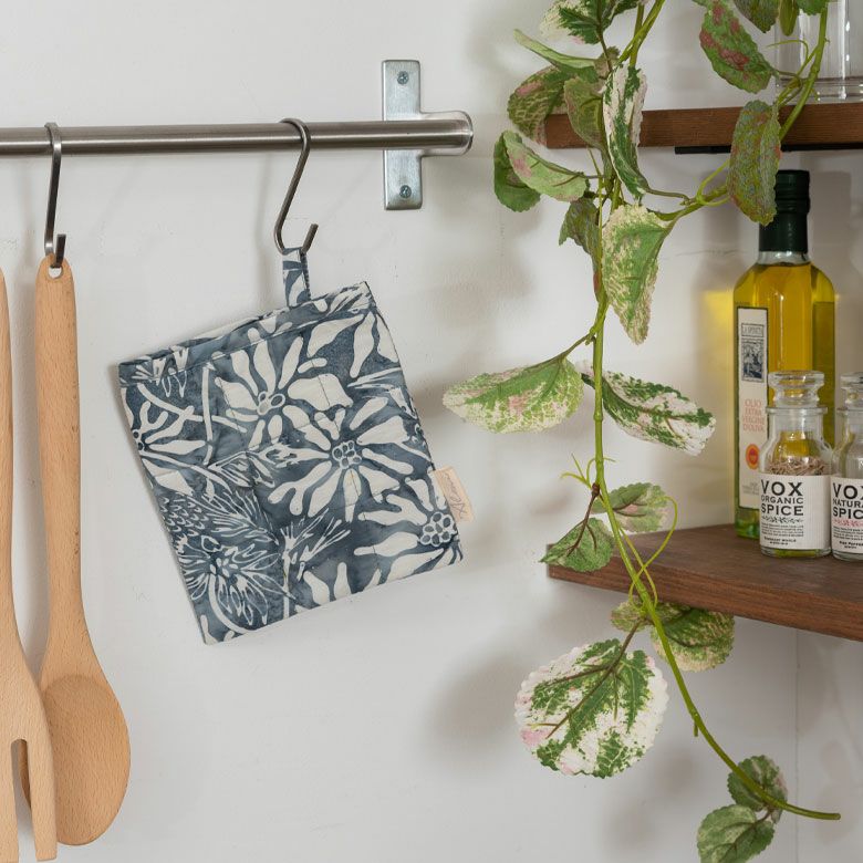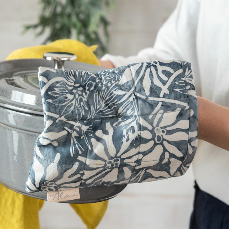 片手ミトン ポットホルダー オーブンミトン なべ敷き 左右兼用 キッチン小物 キッチン用品 ループ付き アウトドア バーベキュー 母の日 敬老の日 結婚祝い プレゼント ギフト ミトン 鍋掴み なべつかみ ポットマット スタンプ バティック 花柄 ロング コットン 綿100% 約 W15 × H16cm Alami アラミ 鍋敷き なべしき キルティング 四角 スクエア 片手 キッチン雑貨 おしゃれ 北欧 アジアン 雑貨 バリ島 メール便対応 14005
