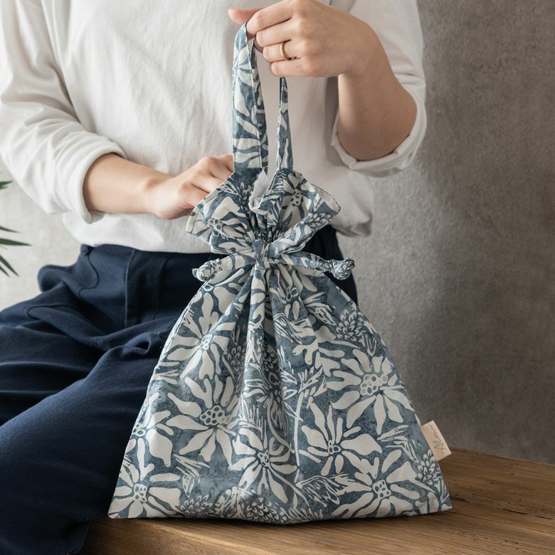 巾着バッグ トートバッグ 持ち手付き巾着袋 巾着トート 贈り物 巾着 きんちゃく 小物入れ ポーチ スタンプ バティック 花柄 グレー ロング コットン 綿100% 約 W30 × H35cm Alami アラミ エコバッグ ランチバッグ お弁当入れ 手提げ袋 インナーバッグ おしゃれ 北欧 アジアン 雑貨 バリ島 メール便対応 14006
