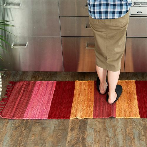 キリムラグ ラグマット インド綿 赤 エスニックラグ ネイティブ キッチンマット コットン ラグマット ワイドボーダー柄 フリンジ付き 綿100% 45×120cm ピンク [34402-pk]【 コットンキリム マット キリムラグ カーペット 玄関マット 台所 敷物 キリム風ラグ ストライプ柄 おしゃれ 夏用 オールシーズン アジアン 雑貨 アジアン雑貨 】
