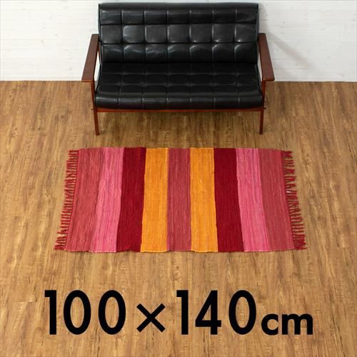 キリムラグ ラグマット インド綿 赤 エスニックラグ ネイティブ コットン ラグ カーペット ラグマット ワイドボーダー柄 フリンジ付き 綿100% 100×140cm ピンク [34404-pk]【 コットンキリム マット キリム風ラグ ストライプ柄 リビング かーぺっと らぐ おしゃれ 夏用 オールシーズン 綿 インテリア アジアン 雑貨 アジアン雑貨 】