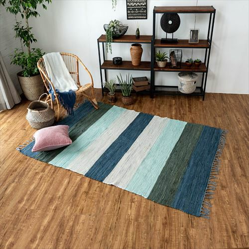 キリムラグ ラグマット インド綿 青 エスニックラグ ネイティブ コットン ラグ カーペット ラグマット ワイドボーダー柄 フリンジ付き 綿100% 140×200cm ブルー [34405-bl]【 コットンキリム マット キリム風ラグ ストライプ柄 リビング かーぺっと らぐ おしゃれ 夏用 オールシーズン インテリア アジアン 雑貨 アジアン雑貨 】