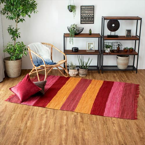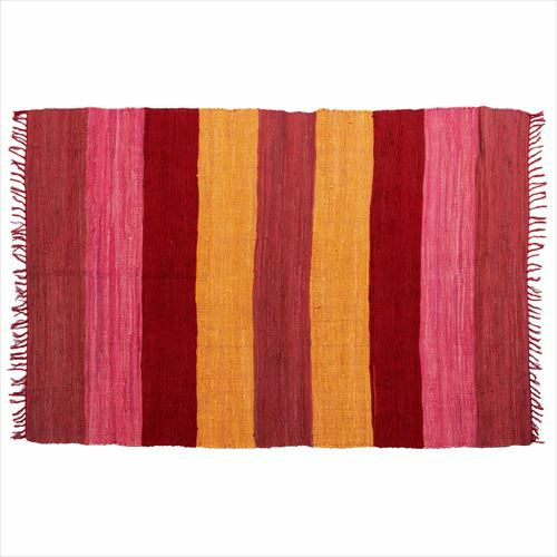 キリムラグ ラグマット インド綿 赤 エスニックラグ ネイティブ コットン マット 玄関マット 室内 ワイドボーダー柄 フリンジ付き 綿100% 60×90cm ピンク [34401-pk]【 ラグ キリムラグ キリム風ラグ ストライプ柄 カーペット ラグマット おしゃれ 夏用 オールシーズン コットン 綿 インテリア アジアン 雑貨 アジアン雑貨】