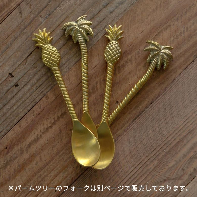 真鍮カトラリー キッチン ダイニング レストラン 店舗 カフェ 【メール便対応】 スプーン 真鍮 カトラリー パイナップル ヤシ パームツリー マット ゴールド 約 W 2.8cm D 13.8cm H 1cm [34511]【 リードフリー アンティーク風 ティースプーン ケーキ フルーツ デザート スイーツ パーティー 南国 リゾート おしゃれ アジアン 雑貨 】