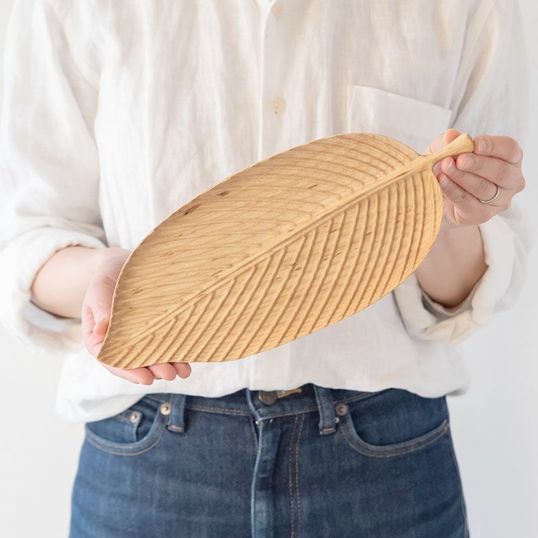 カフェ お菓子 おつまみ 木皿 ランチプレート 食器 ワンプレート ウッドトレイ 葉っぱ リーフ L ナチュラル 木製 トレイ ウッド 約 W 31cm D 13.2cm H 1cm [51307]【 トレー お皿 プレート デコレーション キッチン ダイニング パーティー パン チーズ テーブルコーディネート おしゃれ かわいい 北欧 リゾート バリ アジアン 雑貨 】