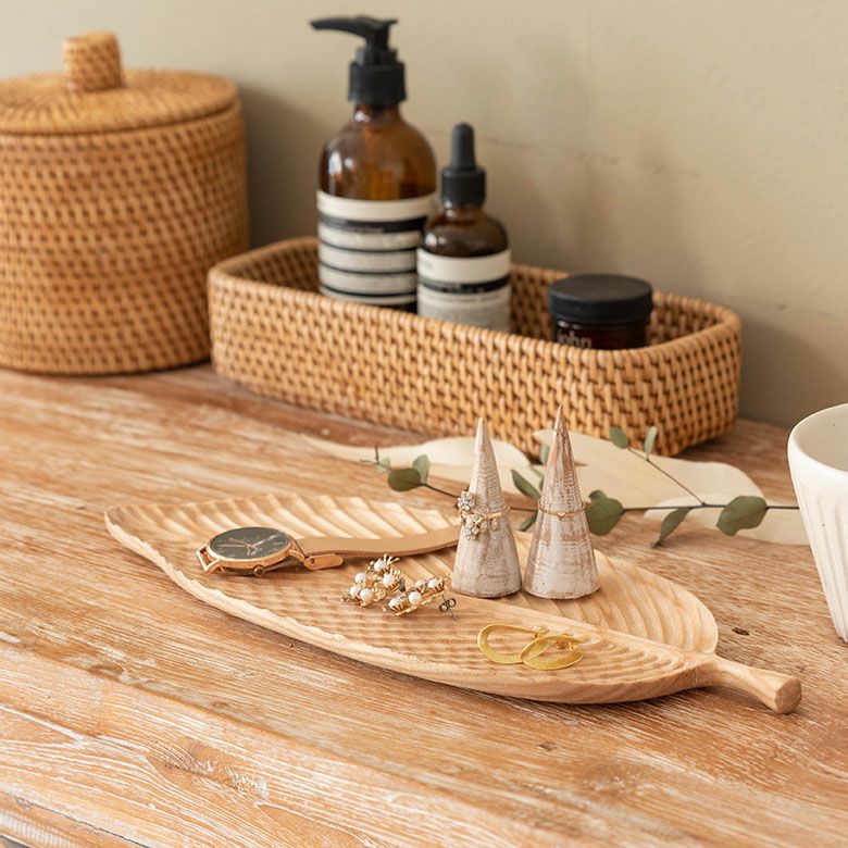 カフェ お菓子 おつまみ 木皿 ランチプレート 食器 ワンプレート ウッドトレイ 葉っぱ リーフ M ナチュラル 木製 トレイ ウッド 約 W 24cm D 11.2cm H 1cm [51306]【 トレー お皿 プレート デコレーション キッチン ダイニング パーティー パン チーズ テーブルコーディネート おしゃれ かわいい 北欧 リゾート バリ アジアン 雑貨 】