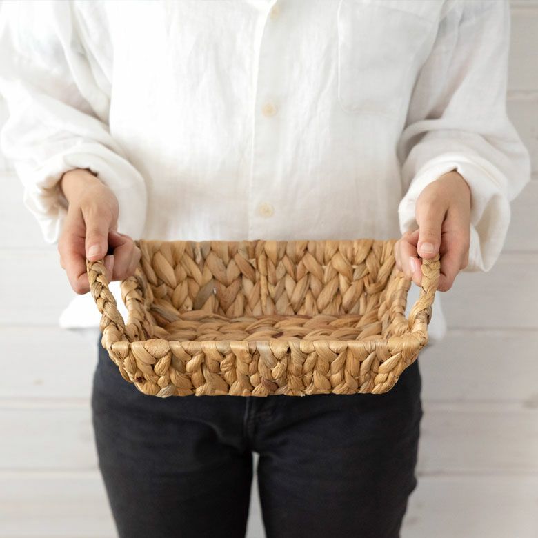カゴ 籠バスケット 小物入れ 小物収納 バスケットトレー トレイ 【現品限り】かごバスケット 持ち手付き スクエア型 浅型 Sサイズ 約 W 32cm D 19cm H 10.5cm [cl-va51142] 【 かご バスケット 籠 カゴ バスケットトレイ 収納 収納ボックス 収納かご 雑貨 ヒヤシンスバスケット おしゃれ アジアン 雑貨 アジアン雑貨 北欧 】