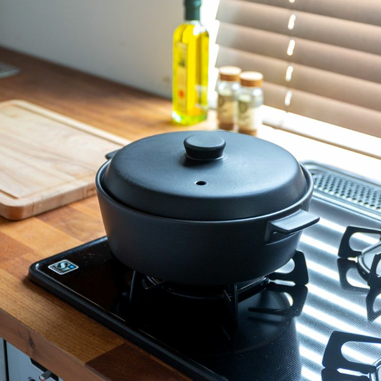 お鍋 ガスコンロ 電子レンジ オーブンレンジ 食洗機対応 ギフト 鍋 オーバル 1,840ml ホワイト ブラック [90150]【 クレイポット 土鍋 洋風 モノトーン シンプル モダン おしゃれ 直火対応 IH対応】