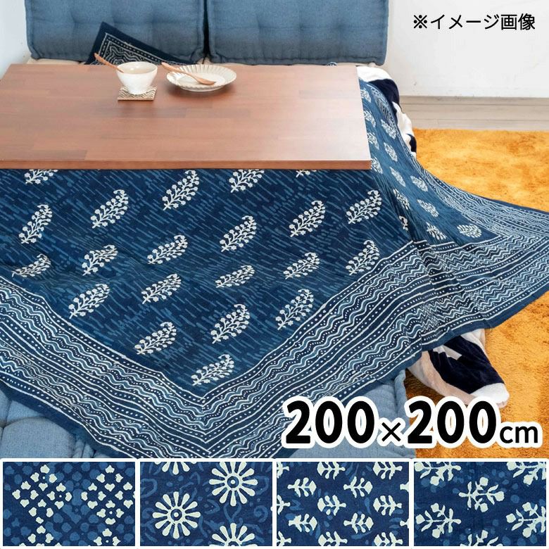 こたつ上掛けカバー こたつ布団カバー ソファ テーブル ベッド こたつカバー インディゴ プリント マルチクロス 200×200cm 大判 コットン クロス [90223]【 マルチカバー こたつ コタツ こたつ布団 コタツ布団 洗える 洗濯 上掛け 正方形 リメイク 模様替え テーブルクロス カーテン 布 ファブリック おしゃれ かっこいい インテリア】