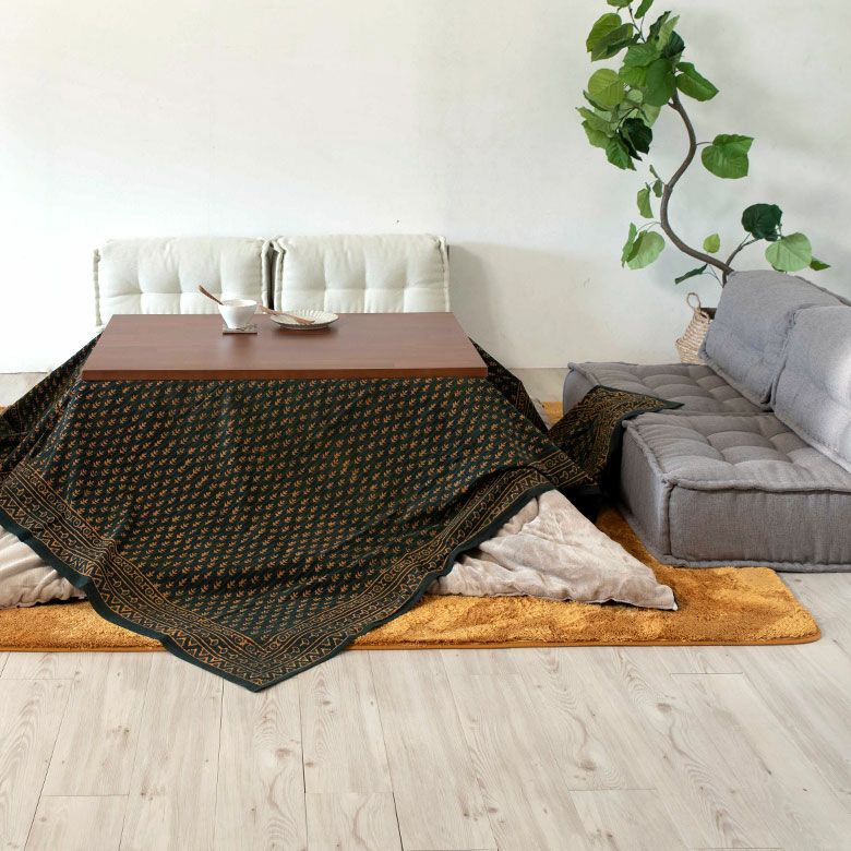 こたつ上掛けカバー こたつ布団カバー ソファ テーブル ベッド ブロックプリント インド 柄 マルチクロス 200×200cm 大判 コットン クロス [90224]【 マルチカバー こたつ コタツ こたつ布団 コタツ布団 洗える 洗濯 上掛け 正方形 リメイク 模様替え テーブルクロス カーテン 布 ファブリック おしゃれ かっこいい インテリア】