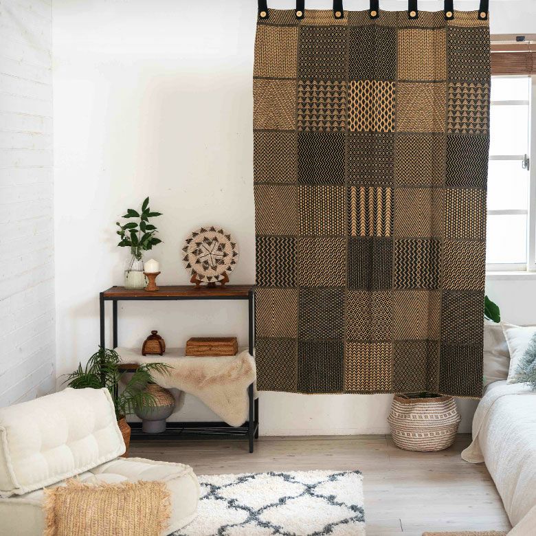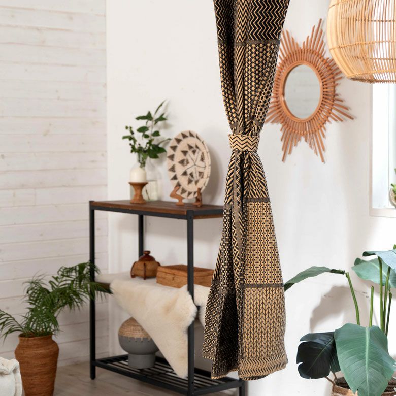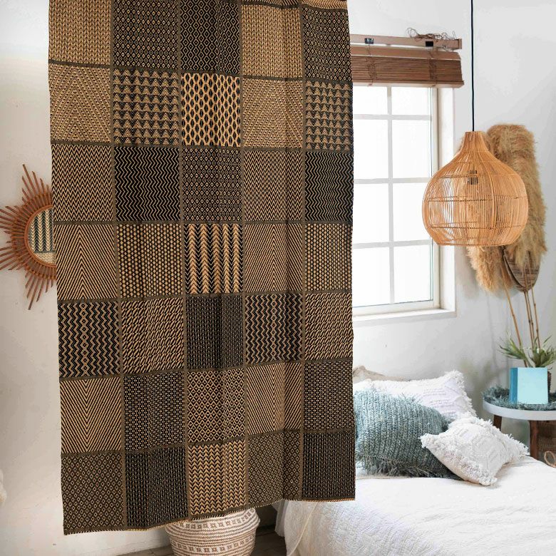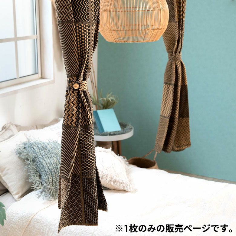 フラットタイプカーテン 幾何学文様 織物 ファブリック カーテン 幅110×丈178cm ブラウン ブラック 柄 [90217]【 フラットカーテン アフリカン柄 幾何学柄 ネイティブ柄 間仕切り おしゃれ アジアン エスニック アフリカン インテリア インド綿 ファブリック リゾート アースカラー 厚め 寝室 リビング】