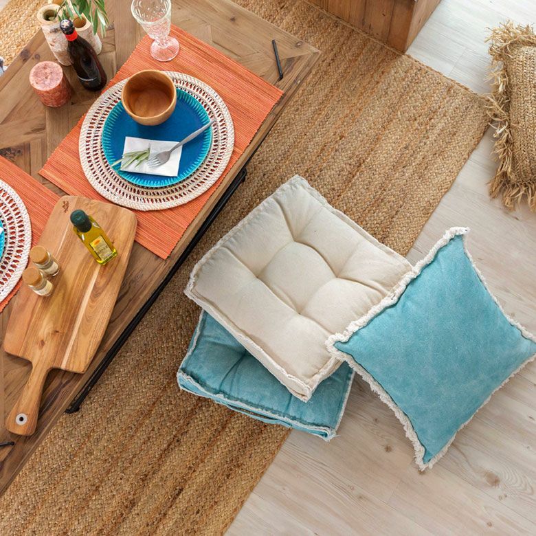 クッション ファブリック 座布団 シートクッション 模様替え フロアクッション クッキークッション ビスケットクッション 無地 デニム 42×42cm 暑さ8cm [66939]【 座布団 座椅子 正方形 四角 厚手 厚い ピンク カーキ ライトブルー グレー ホワイト ガーリー キッズ モロッコ バリ おしゃれ リゾート 北欧 モダン 】