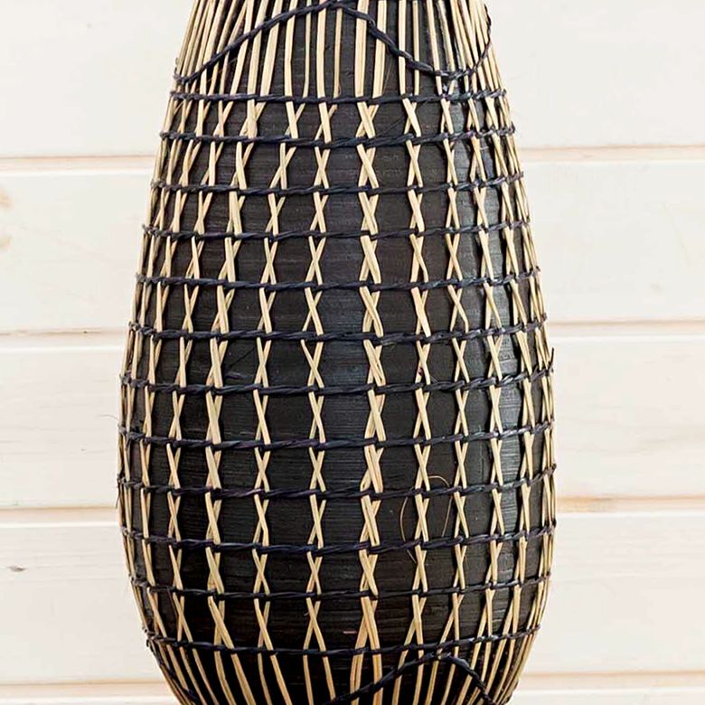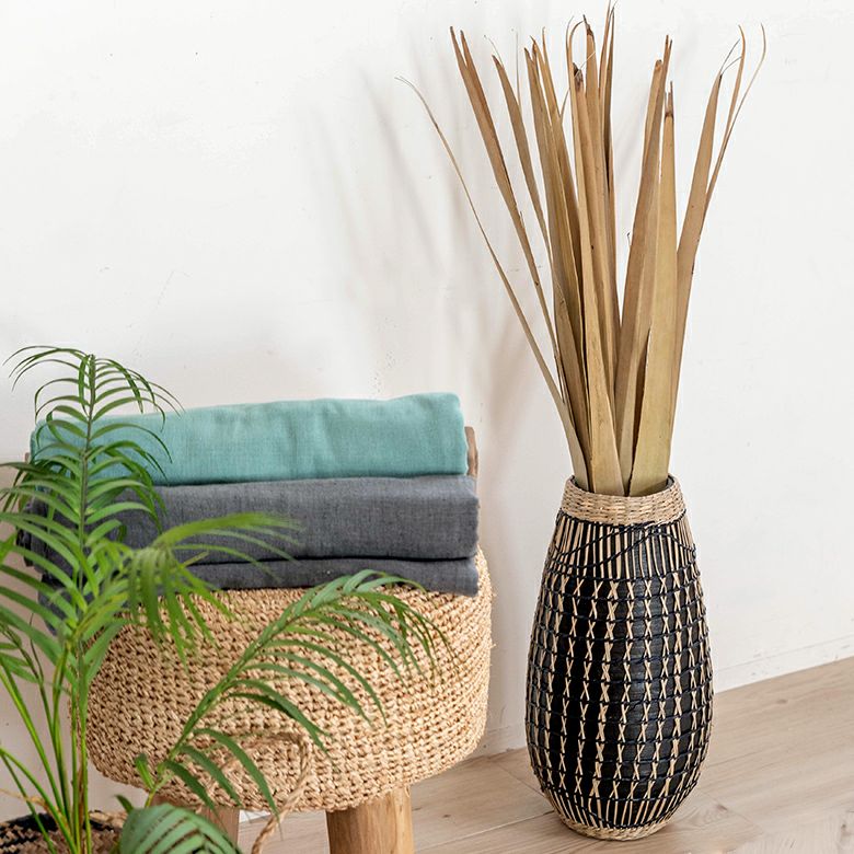 ハンドメイド リビング 玄関 寝室 置物 置き物 インテリア フラワーベース バンブー製 シーグラス製 水入れ不可 壺型 W 19cm D 19cm H 39cm [51233]【 花瓶 花びん 花器 ドライフラワー アートプランツ フェイクグリーン オブジェ おしゃれ リゾート BOHO トライバル モダン アフリカン エスニック アジアン雑貨 】