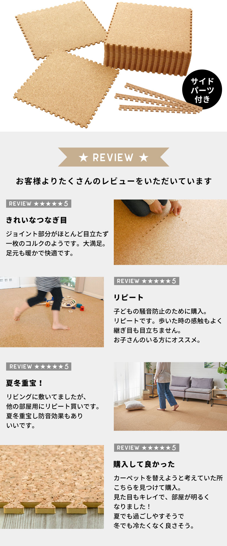 天然大粒コルクを使った、ジョイント式コルクマットの高品質シリーズ。