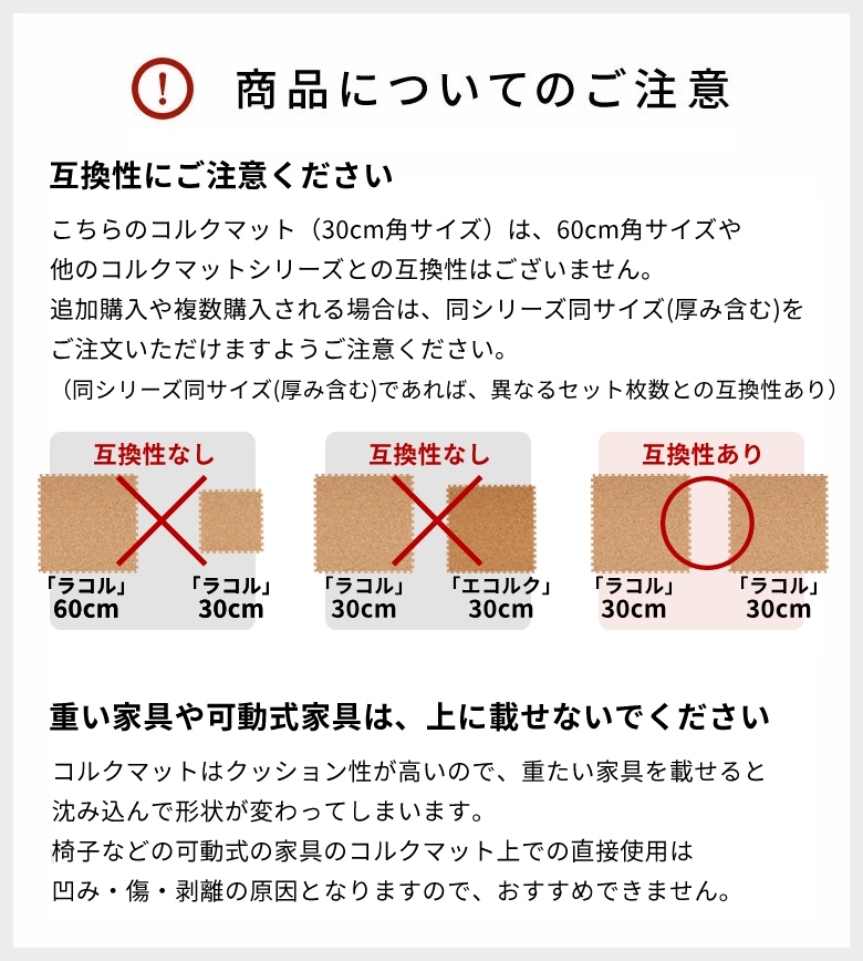 高品質なポルトガル産の天然の小粒コルクを使った、ジョイント式コルクマット。