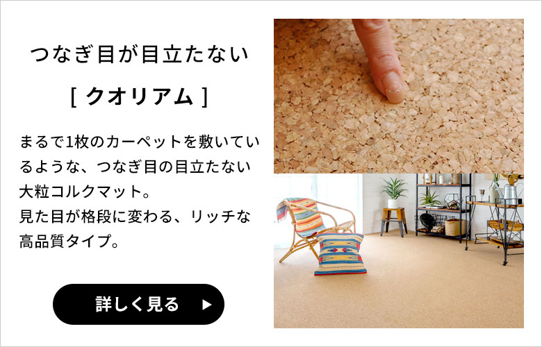2013年9月26日以前に販売をしておりましたコルクマットは、 商品名を[クオリアム]へと変更させて頂いております。