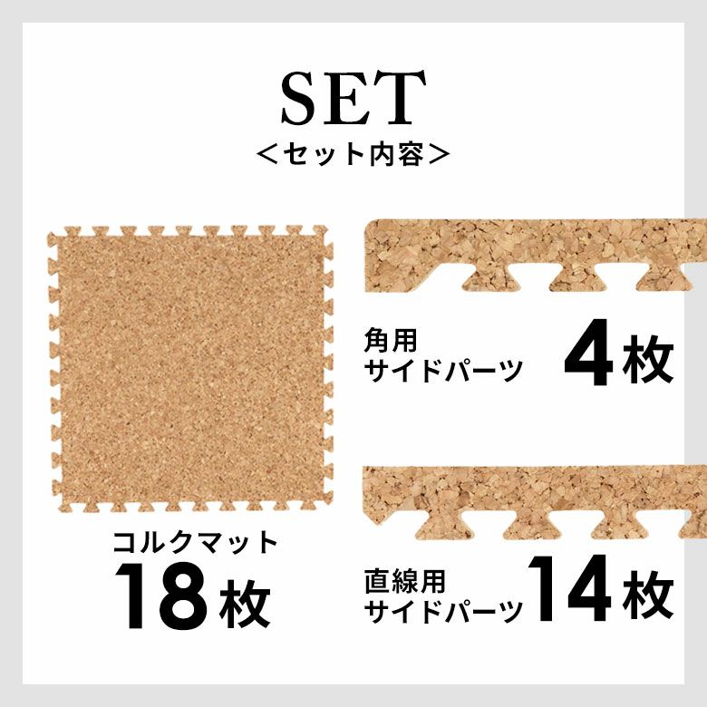 防音性・安全性・保温性に優れたジョイント式コルクマット 【国内検査済み】コルクマット[エコルク]大判45cmタイプ 48枚セット 団地間 江戸間6畳用 サイドパーツおまけつき【おしゃれ コルク カーペット コルクカーペット コルクタイル ジョイントマット プレイマット ジョイント マット 素材 赤ちゃんマット 防音 防音マット 床】