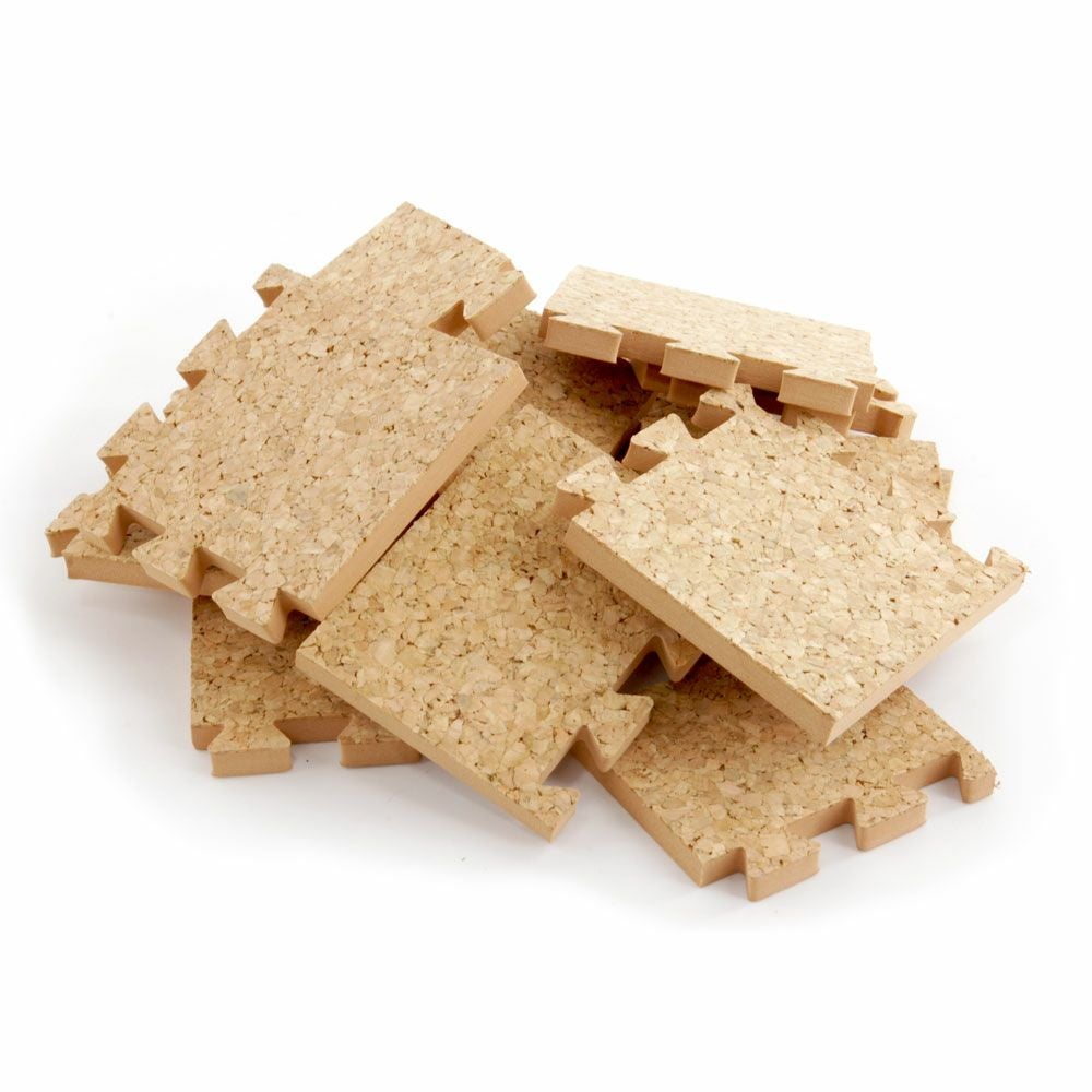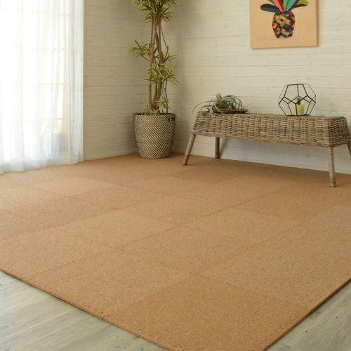 ジグソーパズルのようにはめ込むだけ!お手軽なジョイント式のコルクマット。