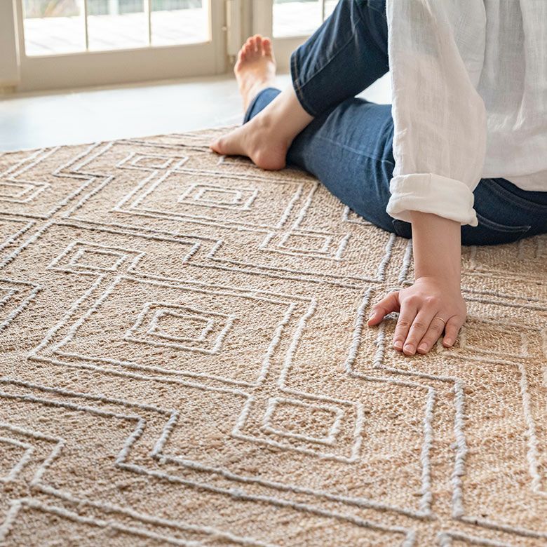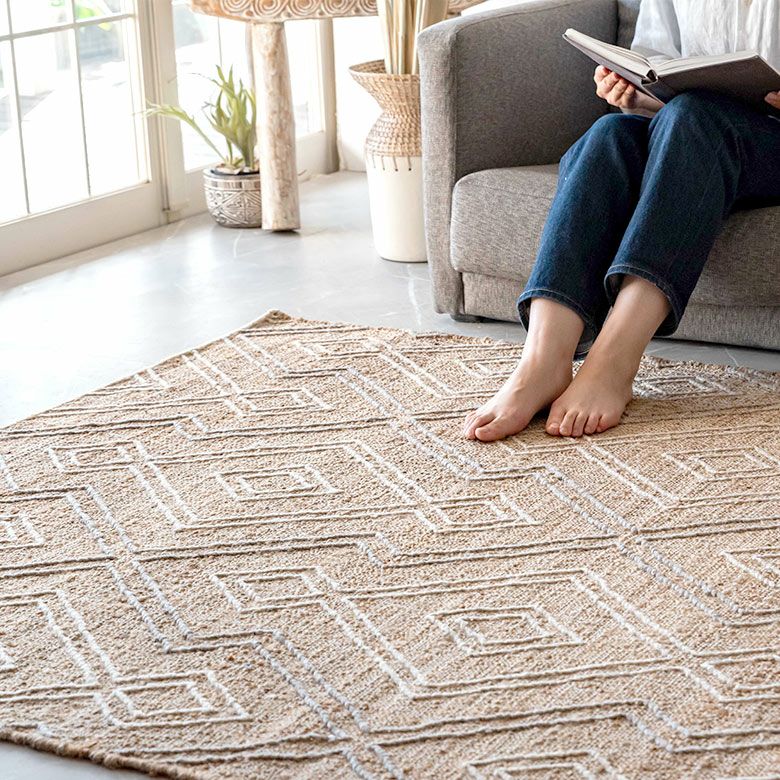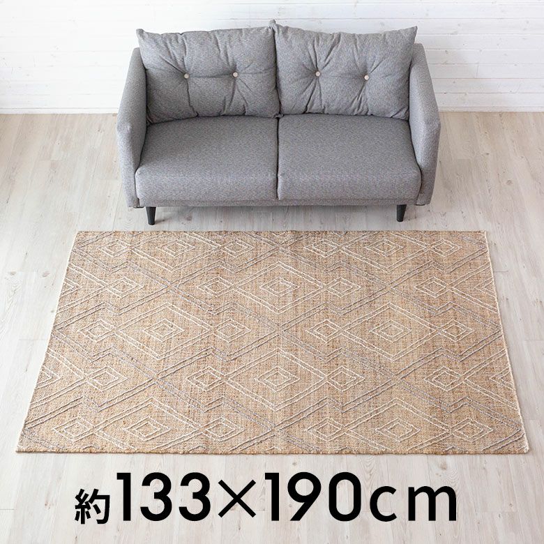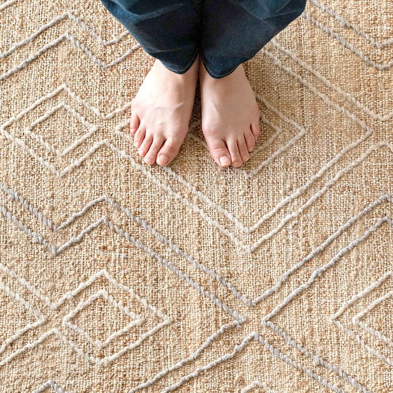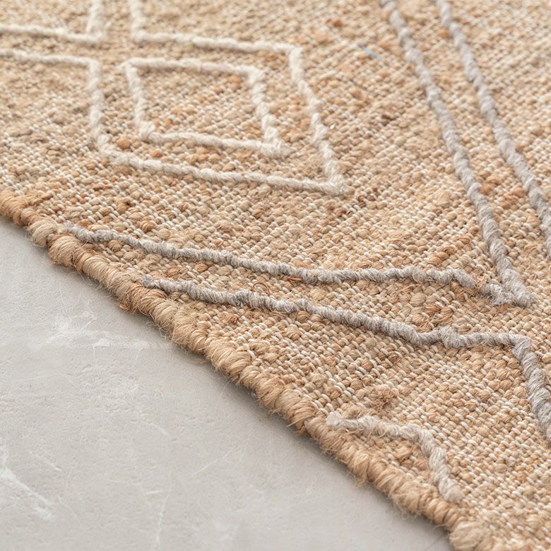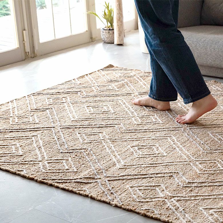 手織り リビング インド BOHO ボーホー 絨毯 敷物 マット ラグ ラグマット 約 130×190 cm 長方形 ジュート 麻 ウール 羊毛 ナチュラル [34446-nt]【 raha ラーハ デザイン カーペット 天然素材 ハンドメイド おしゃれ 北欧 オールシーズン 春 夏 秋 冬 リゾート ヴィンテージ風 幾何学模様 アジアン エスニック バリ 】