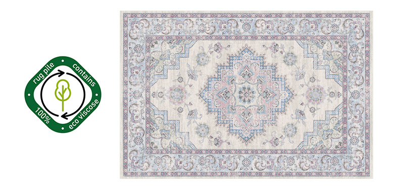 LivaEco™認証済みのリサイクルビスコース100%を使用したサステナブルラグです。