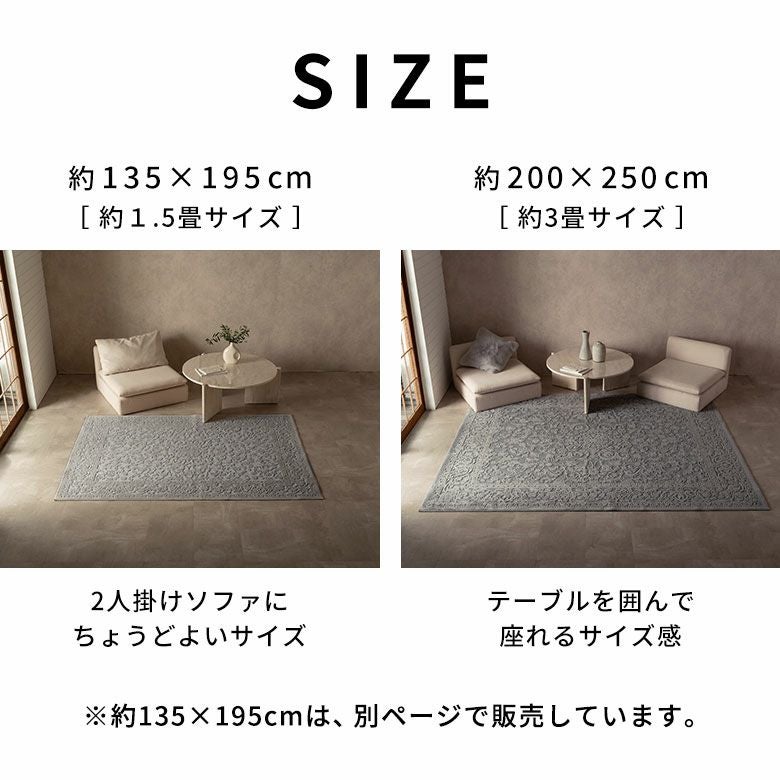 ・約135×195cmと約200×250cmの2サイズ展開