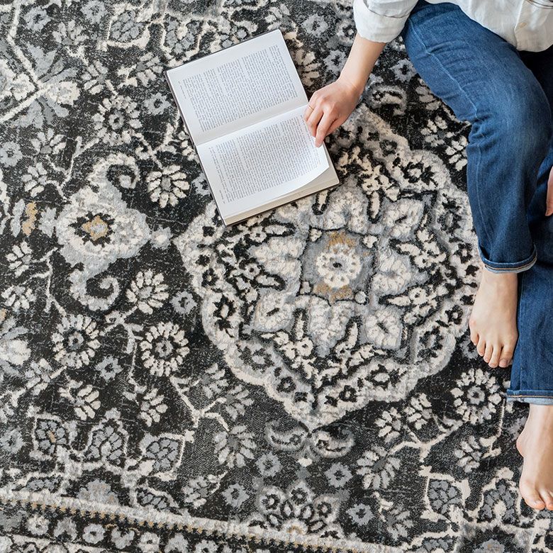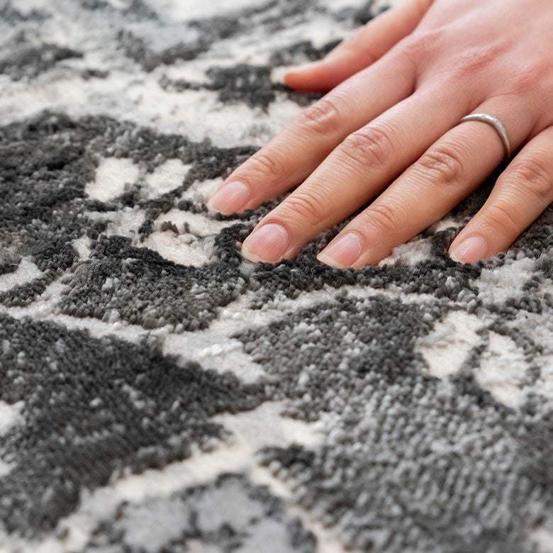 毛足の高低差でエレガントな柄を立体的に表現したラグ。