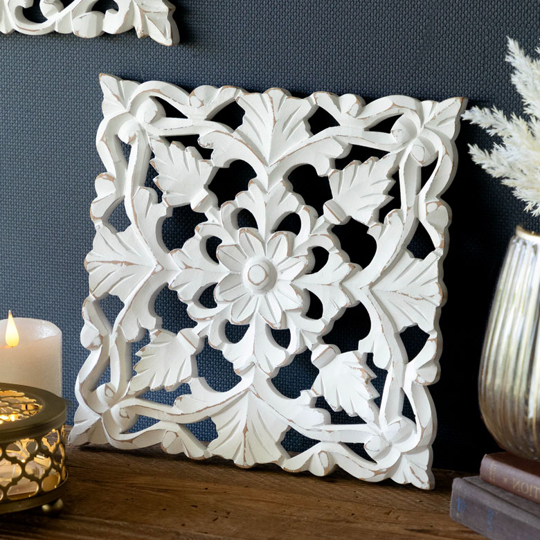 ホワイトウォッシュのウッドレリーフ |