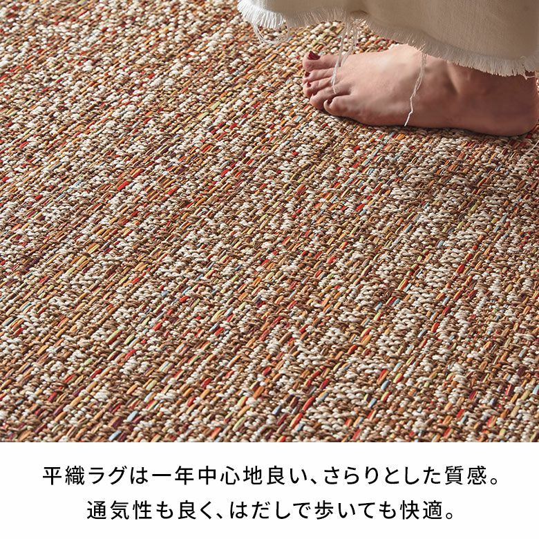 ・さらりとした肌触りの平織タイプなので、暑い季節におすすめの夏用ラグ