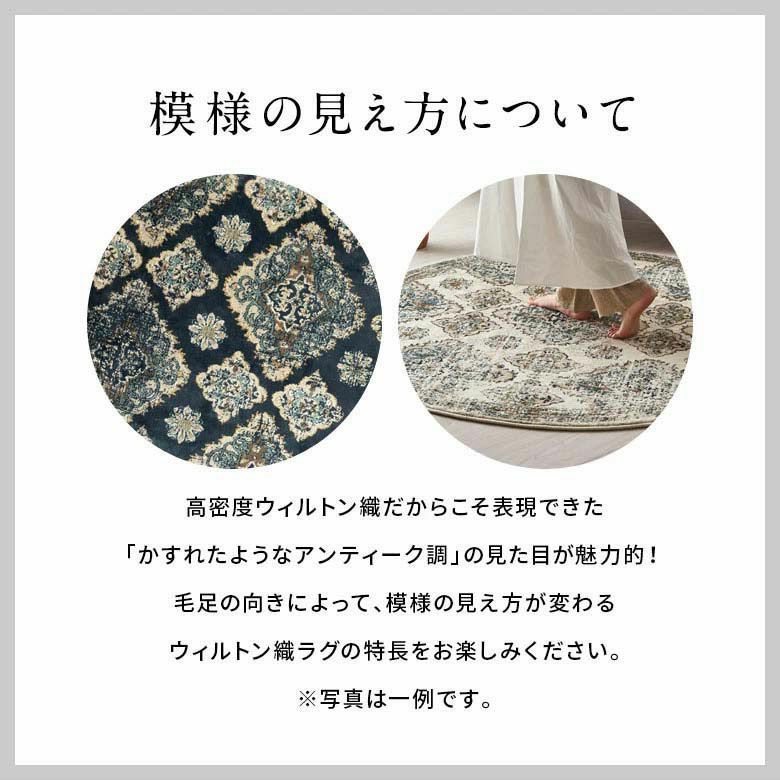 これは高密度ウィルトン織りならではの表現であり、魅力でもあります。