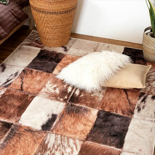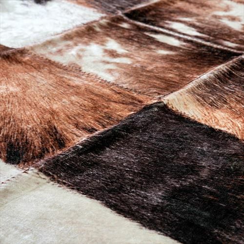 ラグジュアリーなハラコ風のパッチワークを表現したデザインラグ。