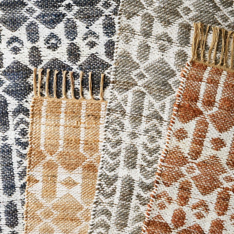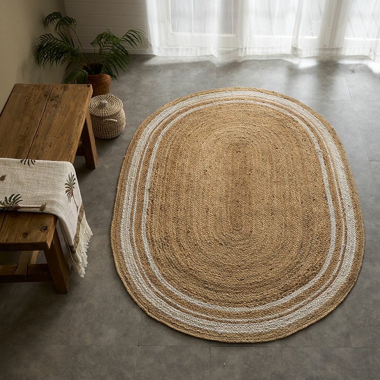 ![]() ジュートで編まれたインドの ハンドメイドラグカーペット |