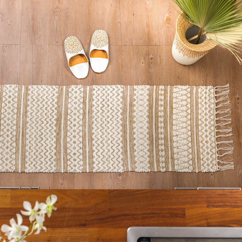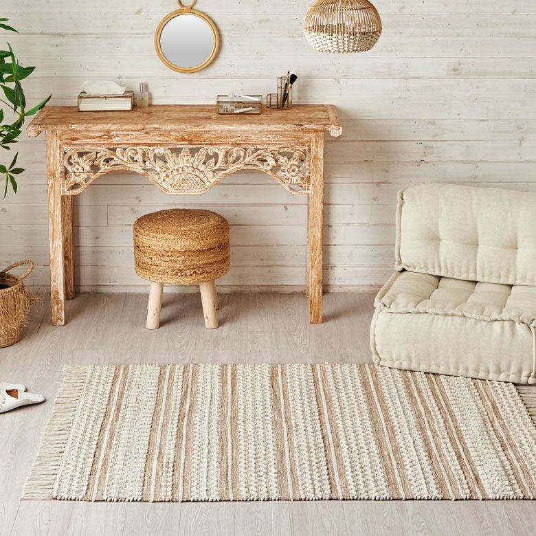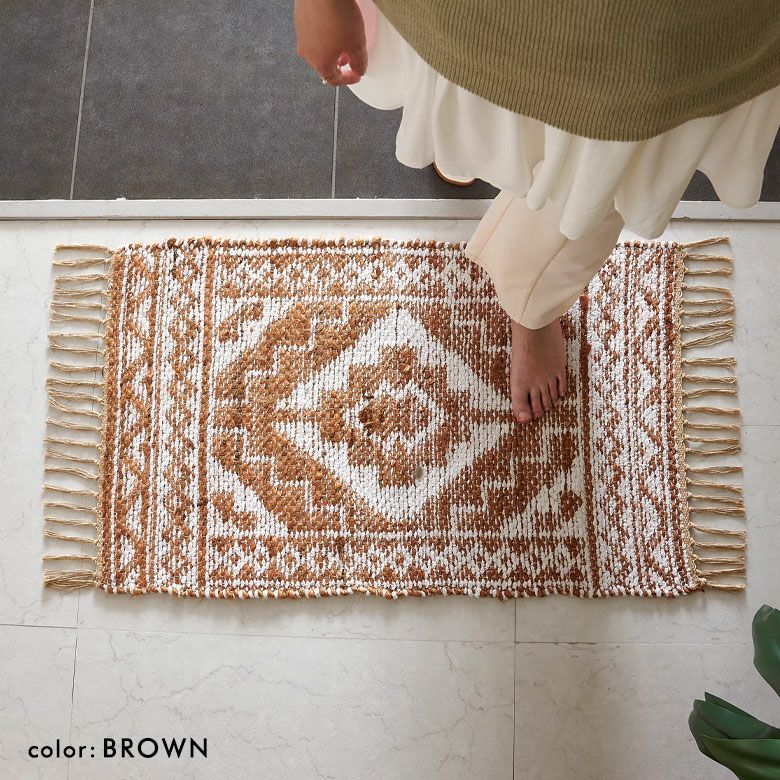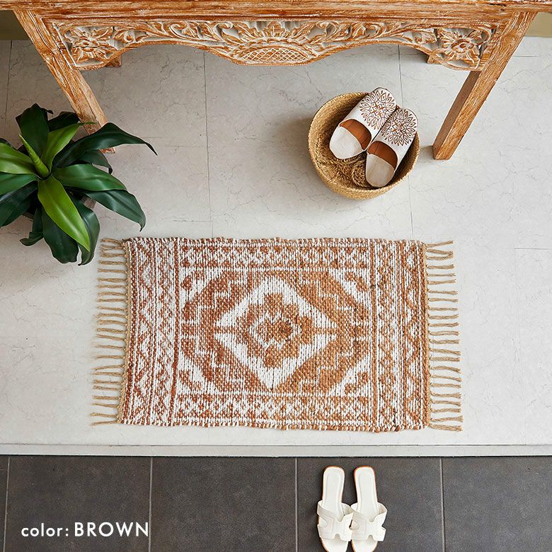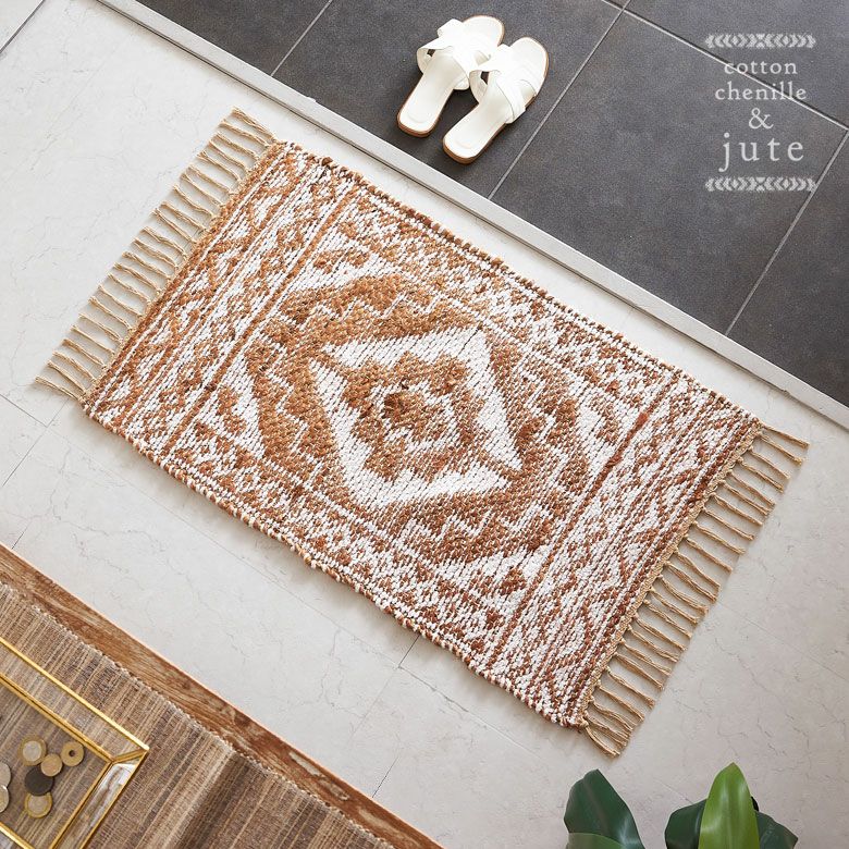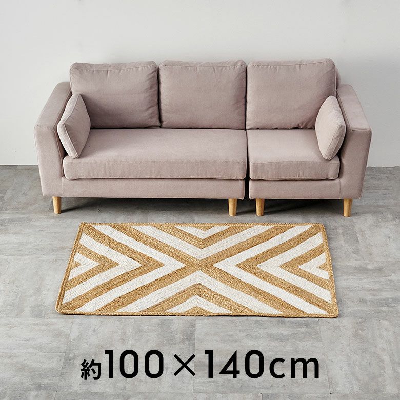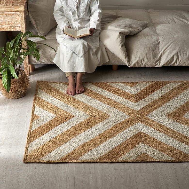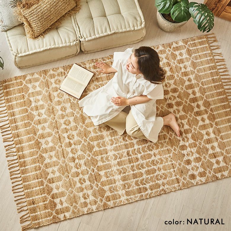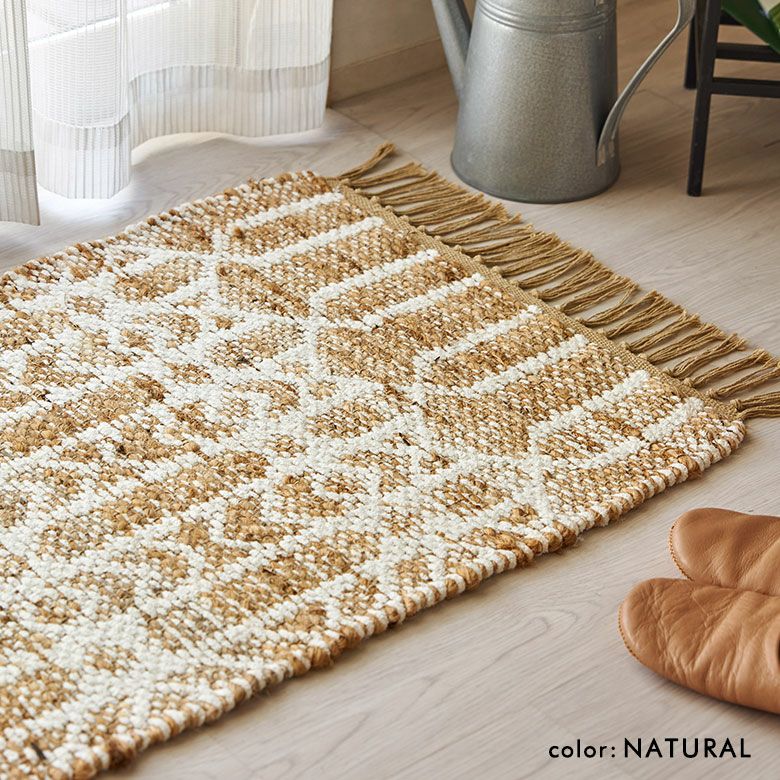 天然素材のジュート(麻)100%を使った、編み目が素敵なラグ。