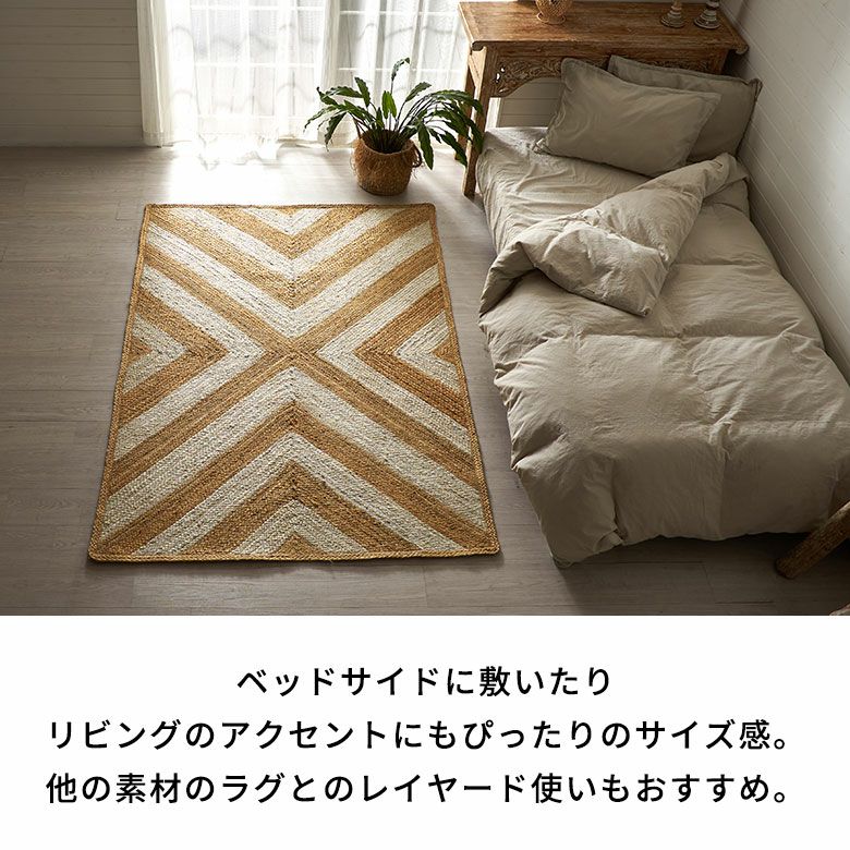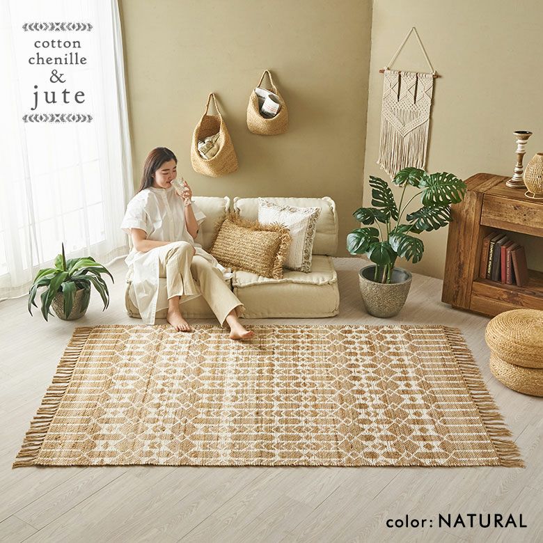 ナチュラル感あふれるジュートラグは、憧れの海外インテリアのようなお部屋コーディネートが楽しめそう。