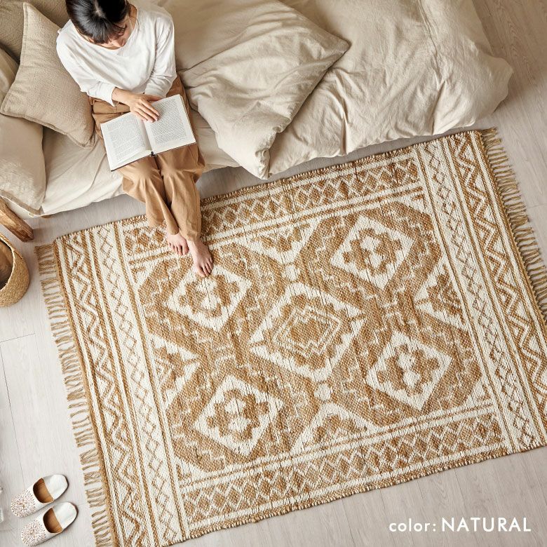 独特のナチュラルな質感を楽しめる、天然素材ラグ。