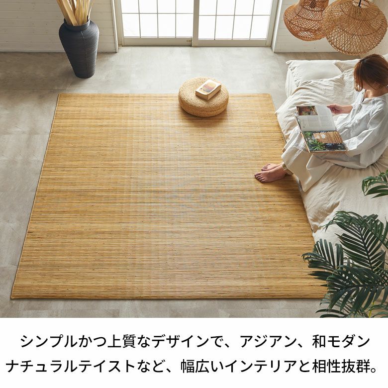 これ一枚で涼しげでナチュラルな空間に。接触冷感で夏でもひんやり快適。通気性、吸湿性にも優れているからフローリングのべたつきも気になりません。