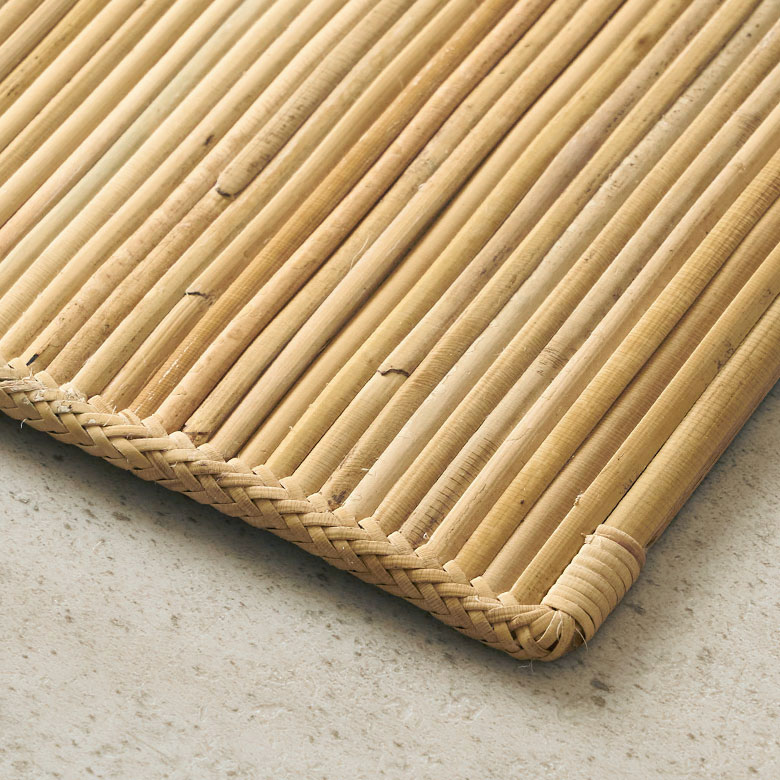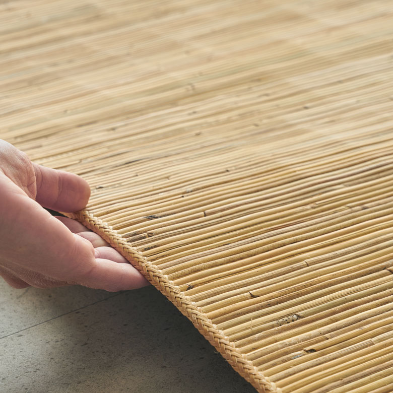 畳との調和がとれる自然な質感。ラタンの素朴な風合いは畳によくなじみます。畳の目に入り込みやすいゴミの侵入も防げます。表面が滑らかなので、さっと掃除機やほうきでキレイにできます。