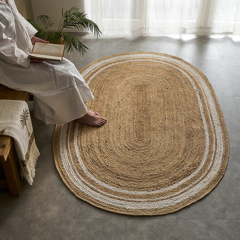 ![]() ジュートで編まれたインドの ハンドメイドラグカーペット |