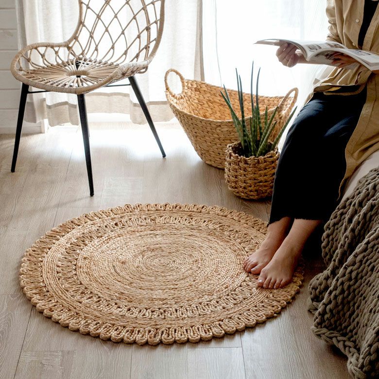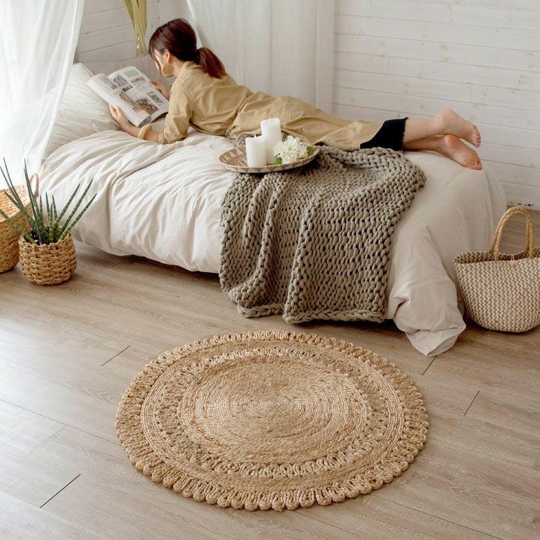 天然素材のジュート100%を使った、編み目が素敵なラグ。