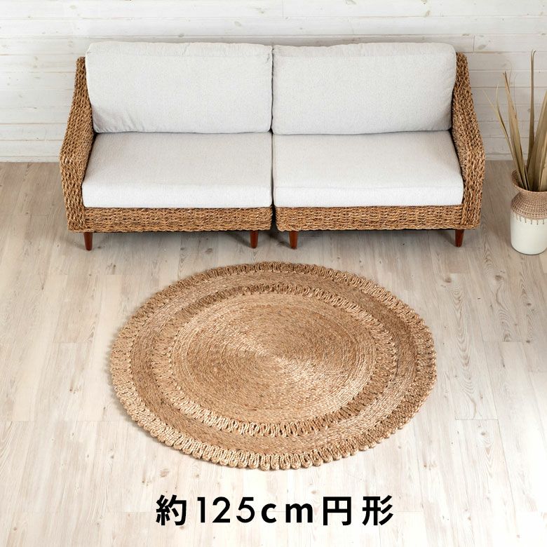 リビングやベッドサイド、チェア下など、さまざまな場所で使える125cmの円形サイズ。