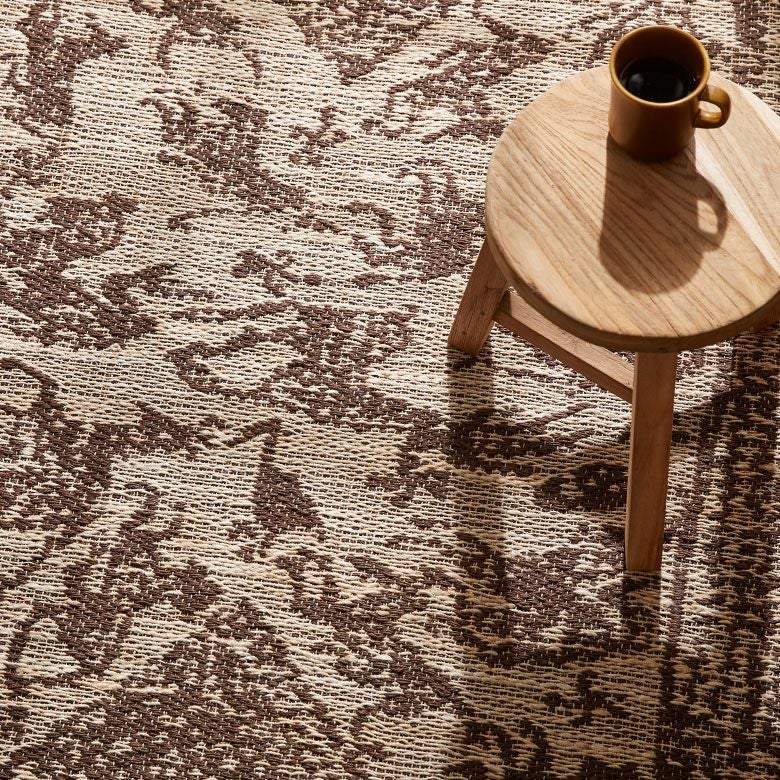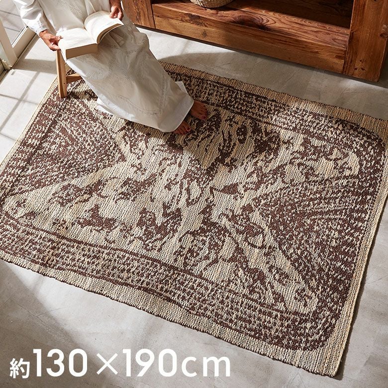 ・ベージュ×ブラウンのエキゾチックなデザインラグ