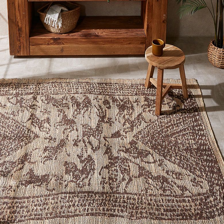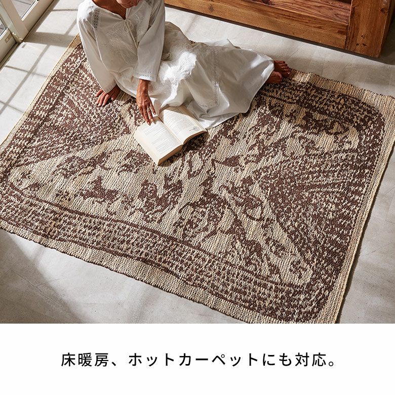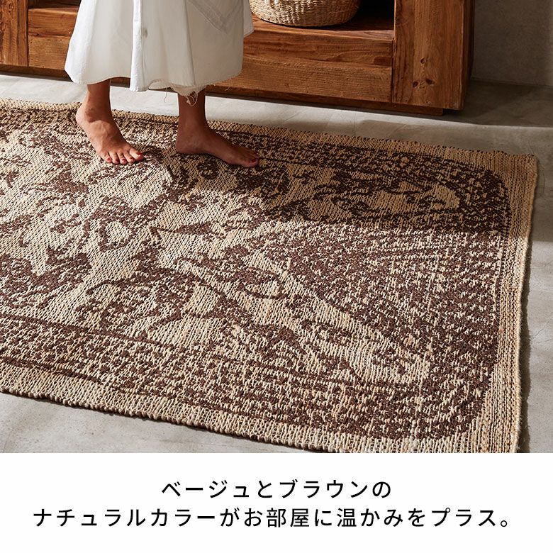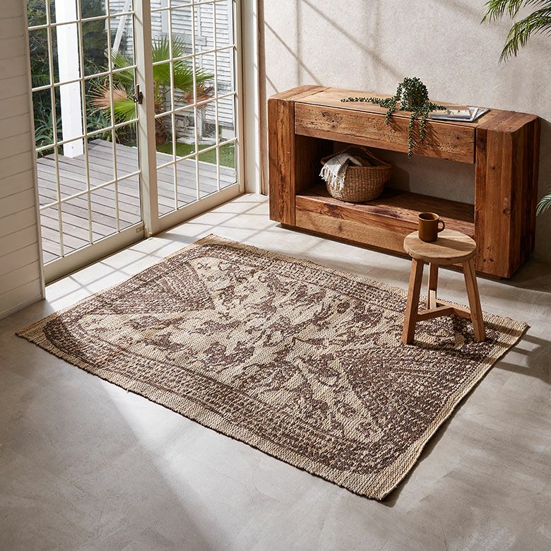 天然素材のジュートを使用したハンドメイドのラグは、自然素材の家具やウッド系のインテリアと相性が抜群。