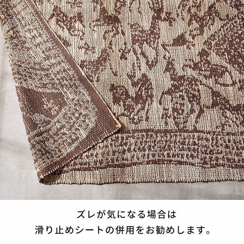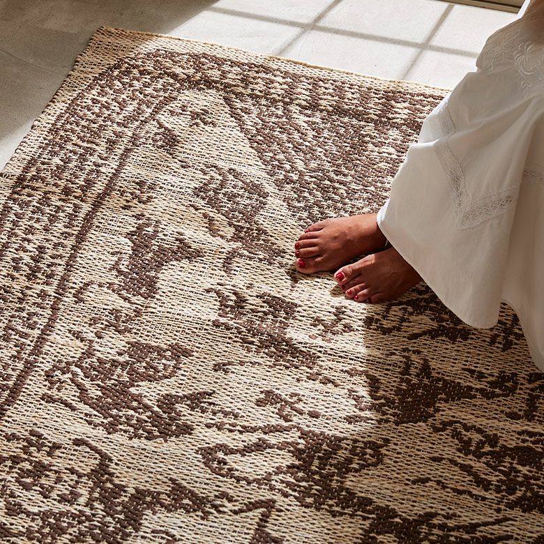 当店でも高い人気を誇る天然素材「ジュート」は通気性と吸水性に優れ、さらっとした使い心地が特徴!湿気が気になる時期も、ジメジメせずにさらりと快適にお使いいただけます。主に黄麻(こうま)というシナノキ科の植物の繊維を原料として作られるジュート素材は、とても成長が早く持続可能な天然資源として注目されているサステナブルな素材です。インドの職人が大型の織り機を用いて丁寧に作り上げたジュートラグは、自然素材の美しさとハンドメイドの温かみを空間にプラスします。